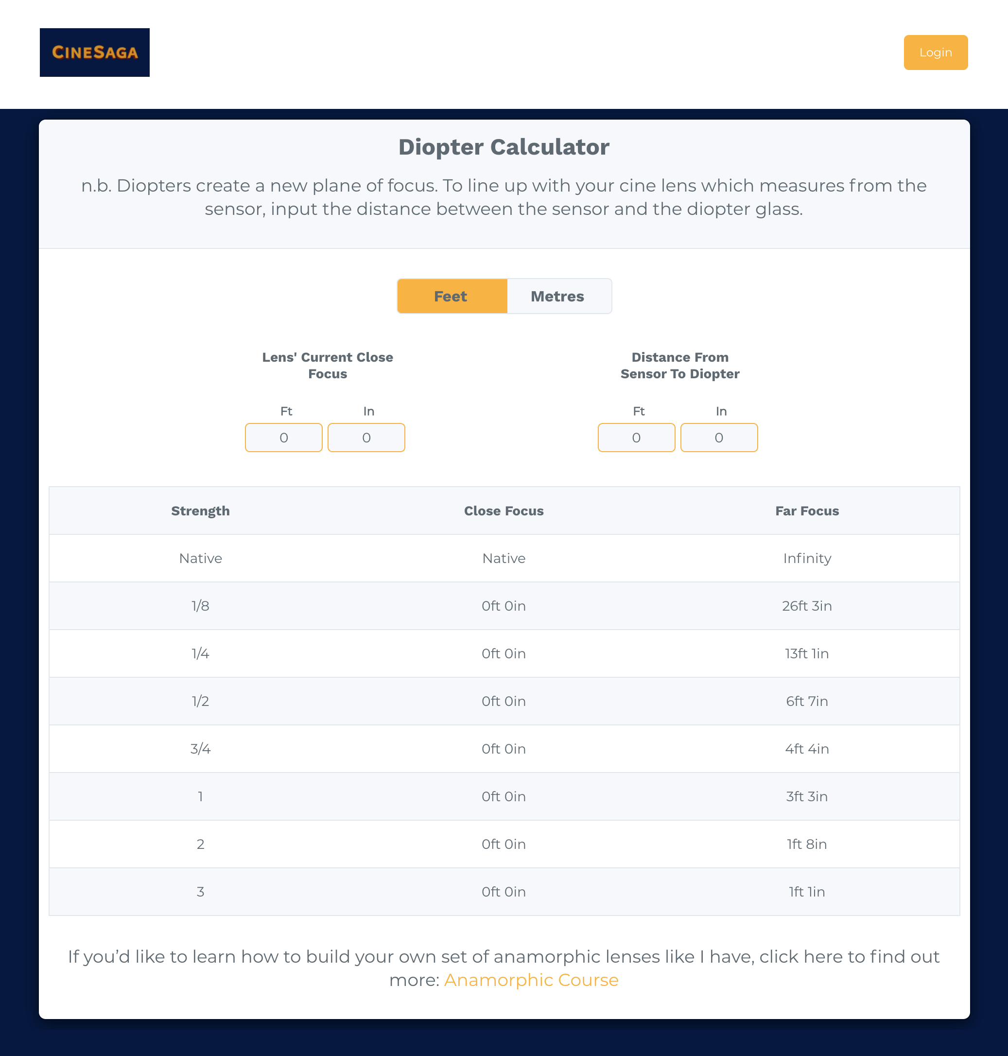 It is all a bit complicated, so we recommend you use the diopter calculator from our friends at CineSaga.
