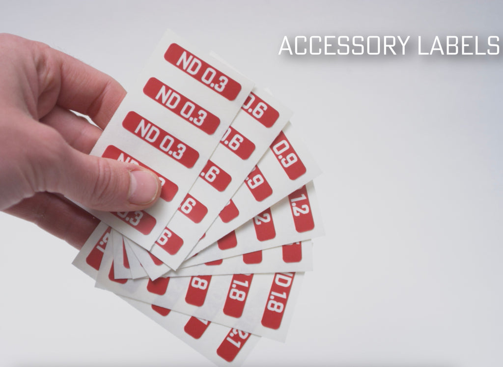 We offer special preprinted labels for common filters like ND and generic Diffusion. You can use gaff tape on the top or in between the stacking ridges on the front or back of the case.