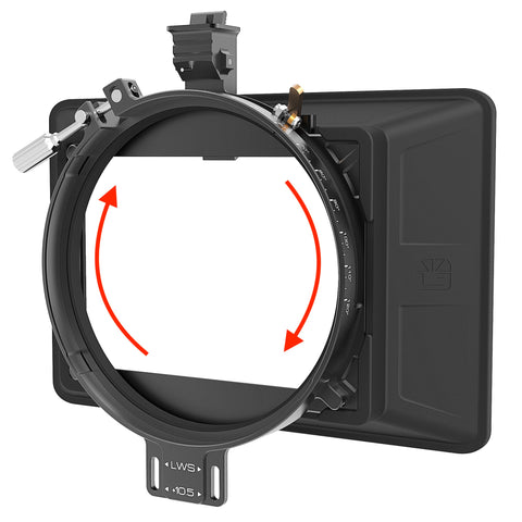Revar Cine makes spinning filter holders that fit into a standard 4x5.65 or 6.6x6.6 matte box but allow rotation of the filter with a wheel on the top or side of the holder. These allow for maximum creative options and can be less cumbersome than a 45 degree rotation found in some matte boxes.