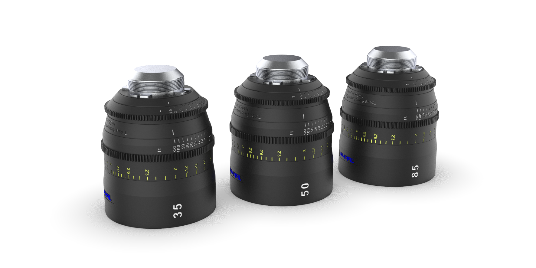Available in 3 focal lengths, the Tokina Cinema Vista 35mm, 50mm and 85mm T1.5 are rendered in accurate details including a spherical front element and thread-in mount with simulated PL mount tabs.