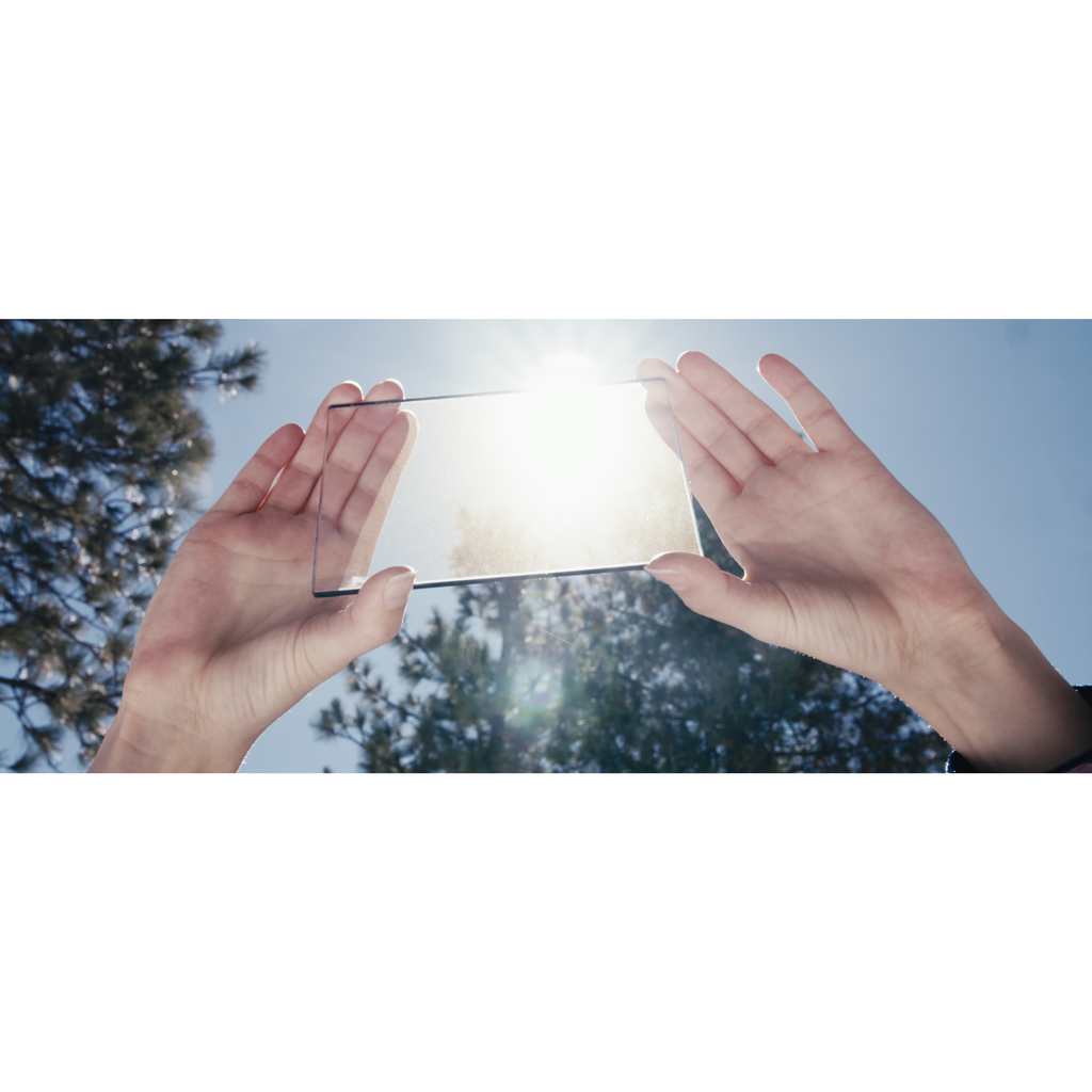 Each filter is carefully crafted with scarf dust treated to have a consistent golden sheen. It is bonded inside the Schott B270 ultra clear glass and polished to precision.
